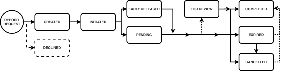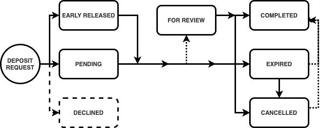 You can trigger the check of the status of a deposit at any moment you consider pertinent. However, every time a deposit changes its status, we will send you a notification containing the ID of the deposit so that you can check its status back to retrieve the new deposit's status.